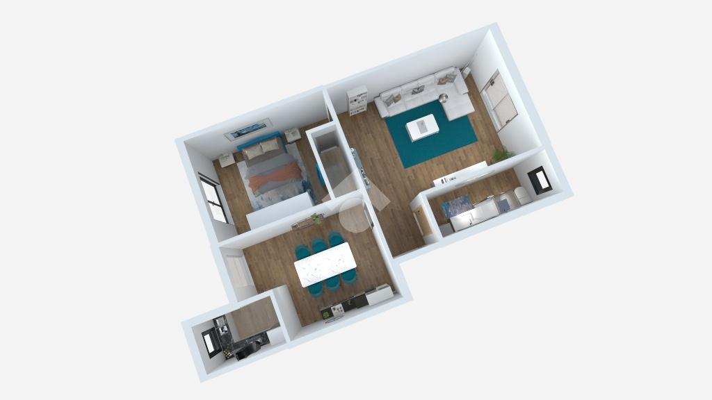 L'appartamento si sviluppa su un unico livello, offrendo un'ottima distribuzione degli spazi. Si accede all'immobile tramite un ingresso che conduce alla zona giorno, composta da soggiorno e un cucinino separato. La zona giorno ha accesso al primo balcone, con vista sul parco condominiale.
