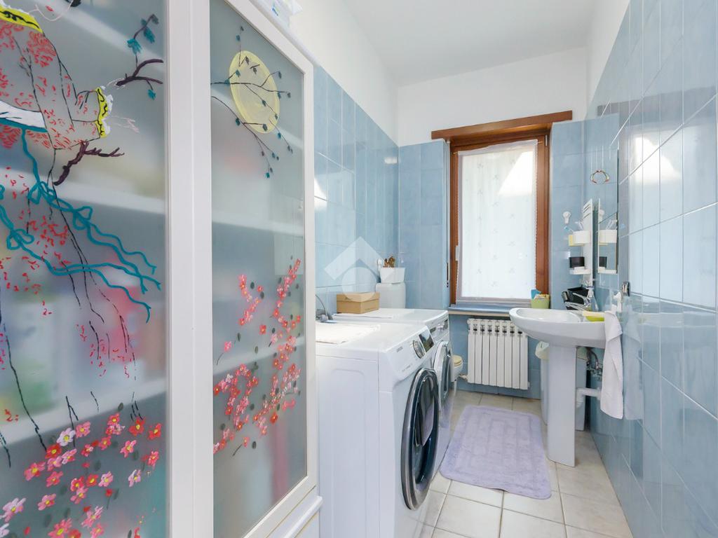 L'appartamento è composto da ingresso living su salone doppio reso luminoso dalla vetrata e dalla porta finestra che ci permette di uscire sul terrazzo, cucina abitabile anch'essa con ampia vetrata con affaccio sul giardino condominiale, due camere da letto matrimoniali, ripostiglio e doppi servizi, di cui uno sfruttato anche come locale lavanderia.