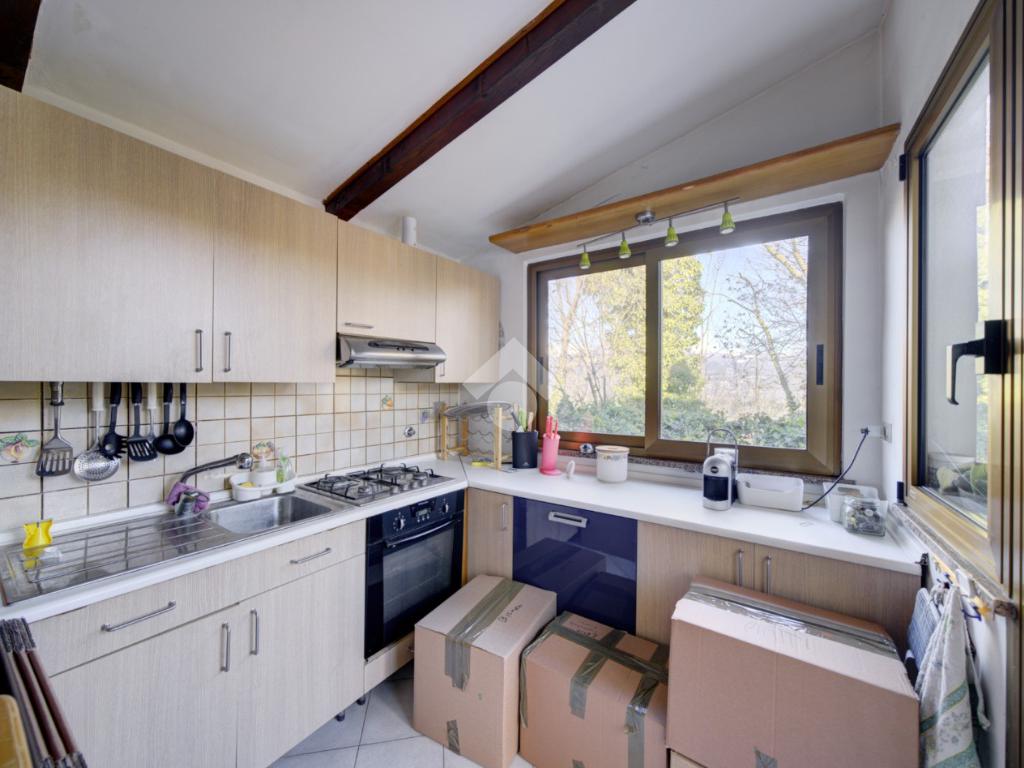 A completare la proprietà vi sono la cantina al piano interrato, l’autorimessa, un posto auto nel cortile esterno e un giardino privato di dimensioni contenute, ideale per momenti di relax all’aperto.