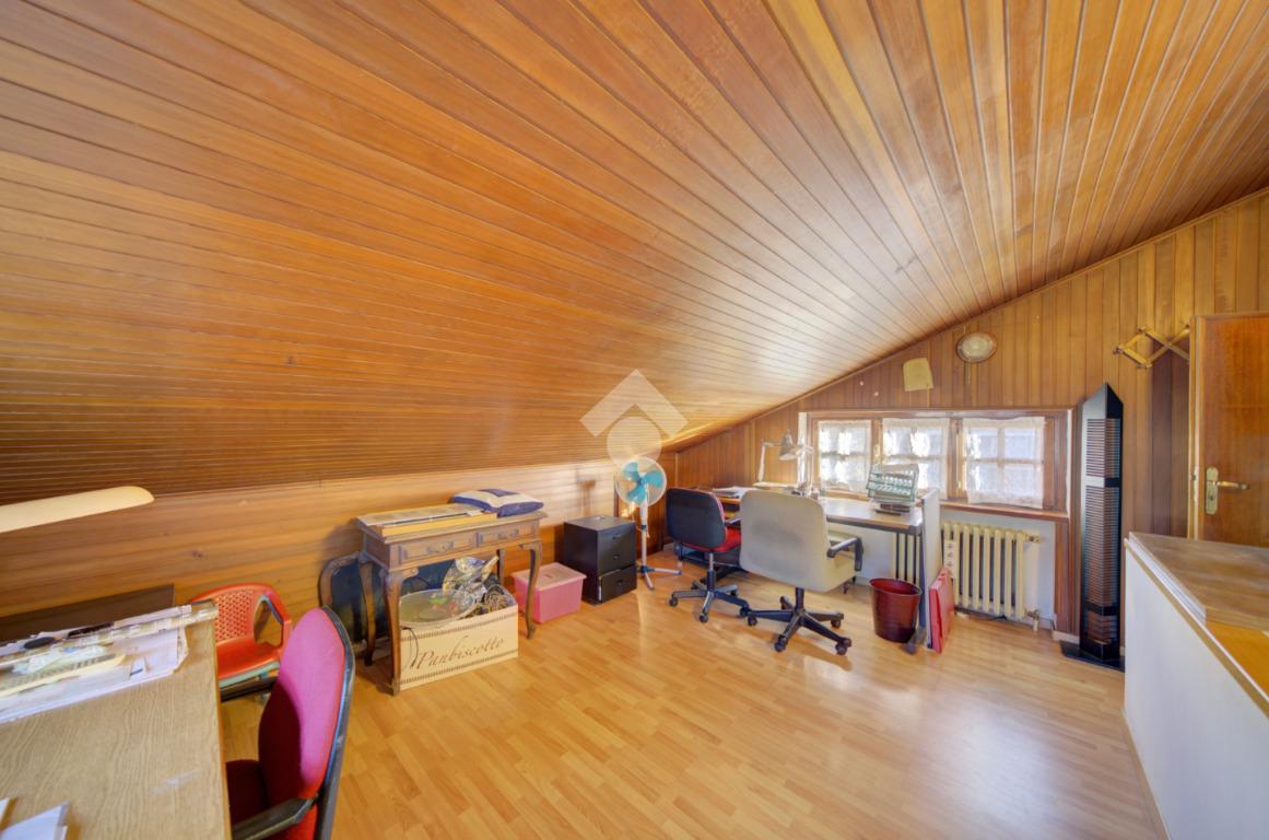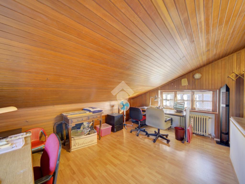 L’accesso all’immobile avviene attraverso un elegante portico in legno, ideale come spazio di accoglienza o zona relax. Dal portico si entra al piano terra, dove l’ingresso conduce a un ampio e luminoso soggiorno, una cucina abitabile, un bagno con vasca e una comoda camera da letto matrimoniale. Il piano primo mansardato ospita due ulteriori camere da letto e un secondo bagno con doccia, perfetti per garantire spazio e comfort a tutta la famiglia.