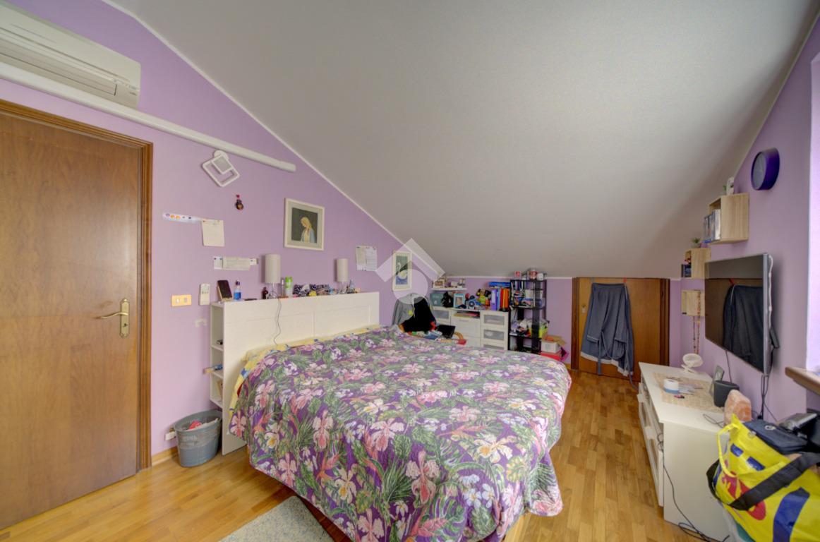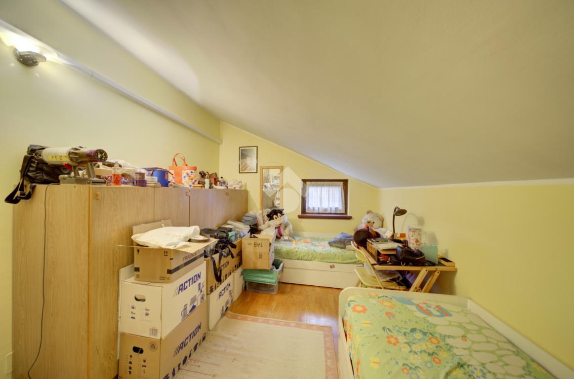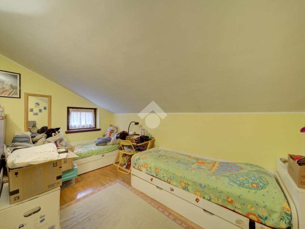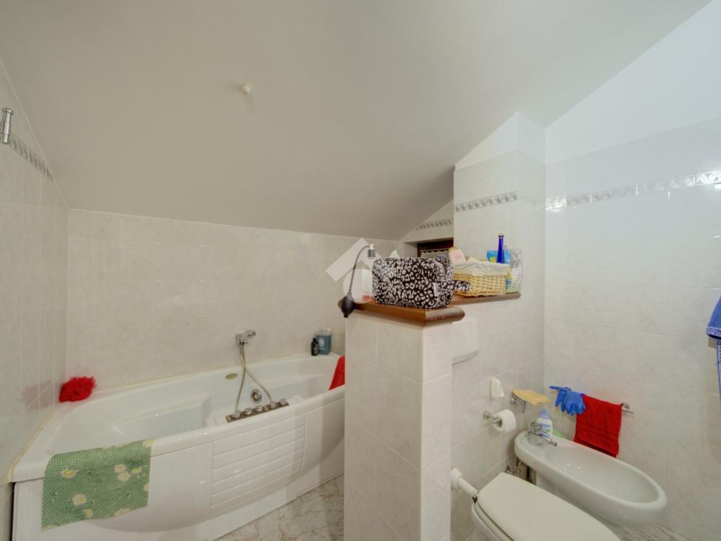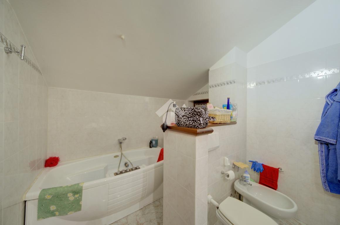 Attraverso la scala interna si accede al primo piano, parzialmente mansardato ma completamente abitabile, dove troviamo tre camere da letto di generose dimensioni complete di climatizzatori. Una delle camere dispone di bagno privato con vasca idromassaggio e doccia, mentre un secondo bagno con vasca serve le restanti due stanze. È inoltre presente una comoda porzione di sottotetto utilizzabile come ripostiglio.