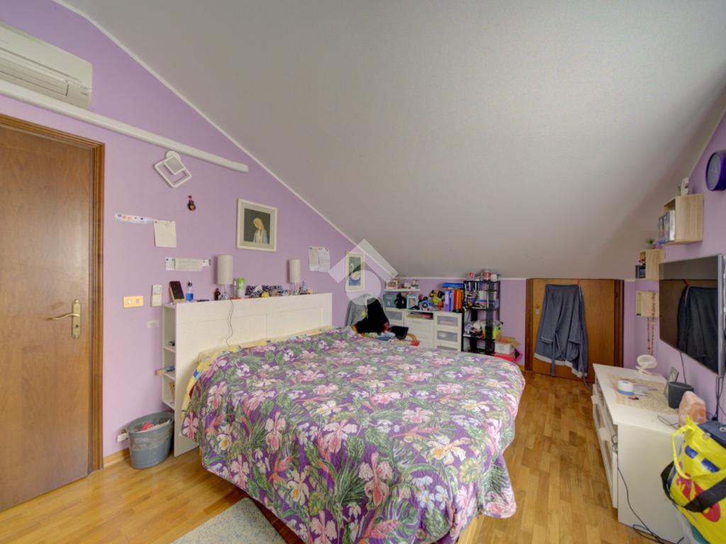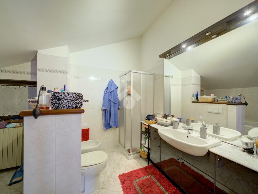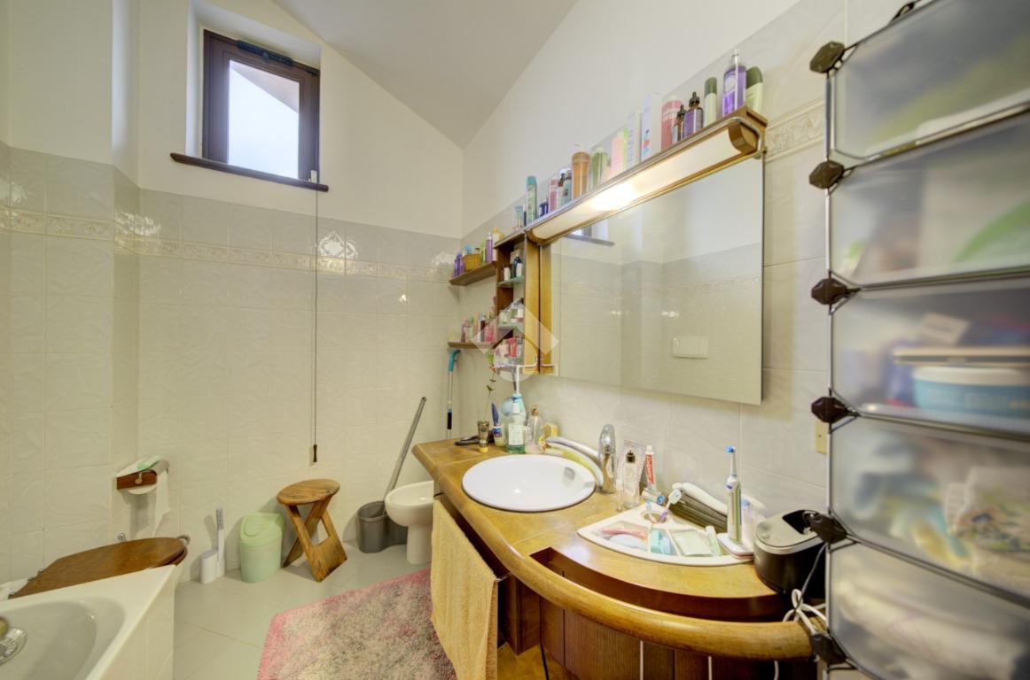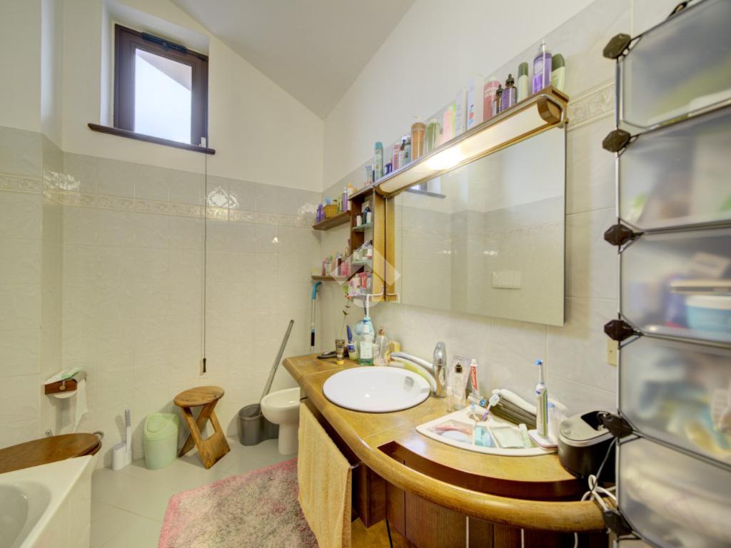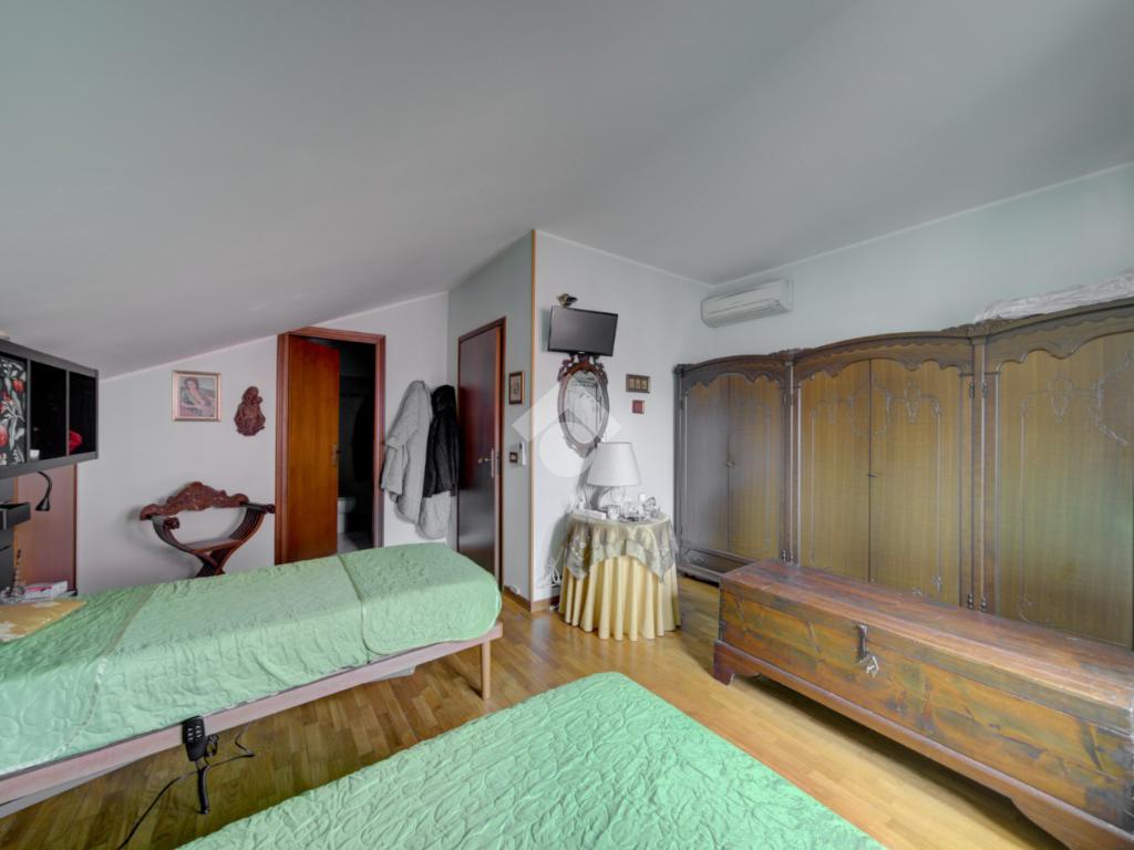 Attraverso la scala interna si accede al primo piano, parzialmente mansardato ma completamente abitabile, dove troviamo tre camere da letto di generose dimensioni complete di climatizzatori. Una delle camere dispone di bagno privato con vasca idromassaggio e doccia, mentre un secondo bagno con vasca serve le restanti due stanze. È inoltre presente una comoda porzione di sottotetto utilizzabile come ripostiglio.
