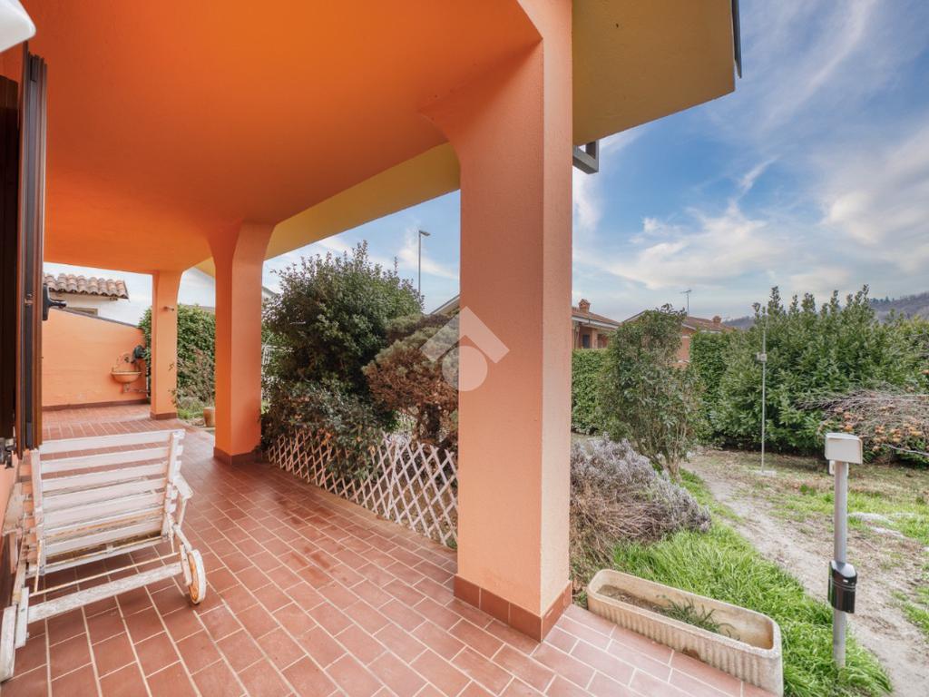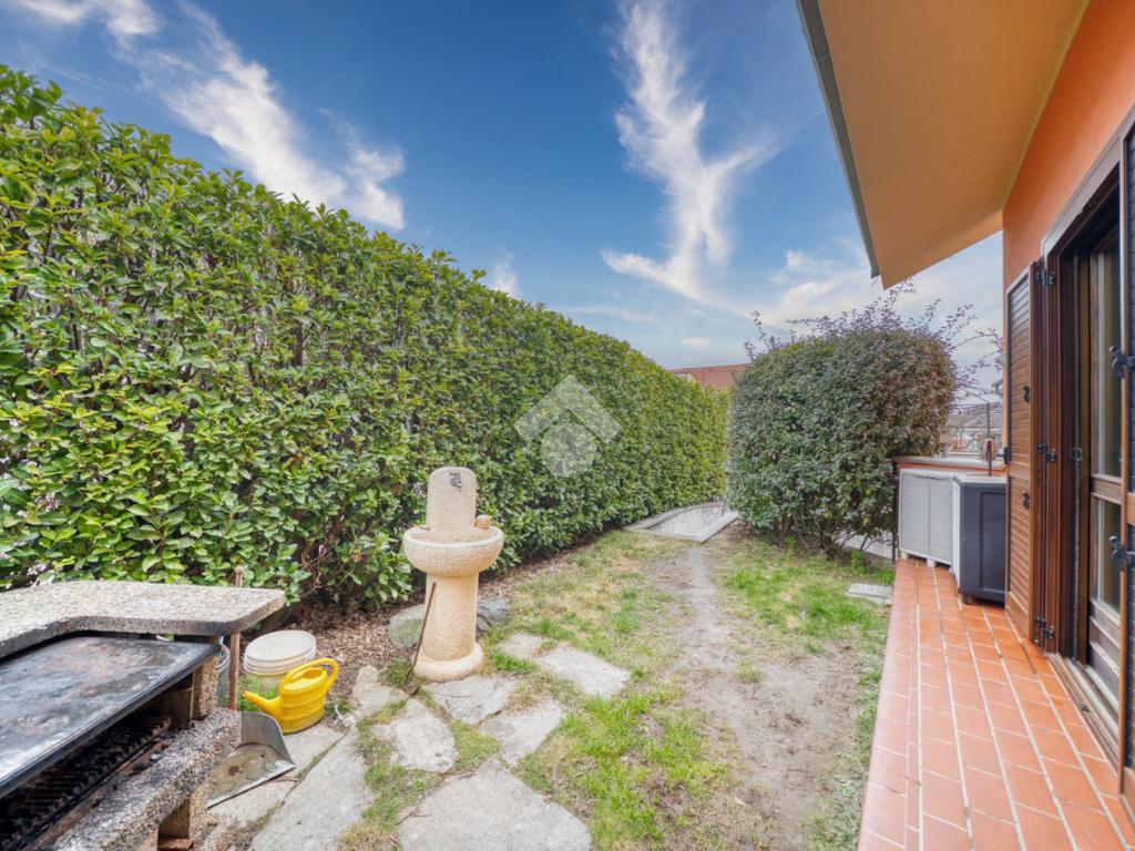 Completa la proprietà un curato giardino privato con impianto di irrigazione, valorizzato da una siepe perimetrale che assicura tranquillità e riservatezza.