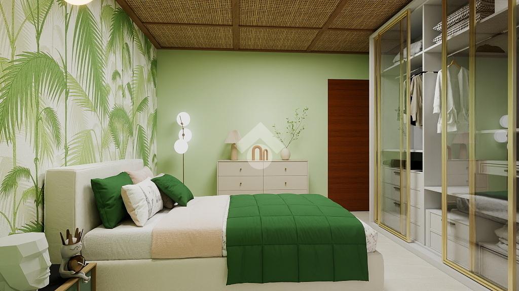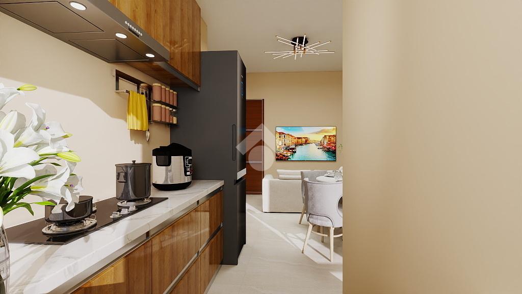 L’ingresso si apre su disimpegno che suddivide gli spazi in modo pratico da cui si accede alla zona giorno con cucina a vista e uscita su balcone coperto.