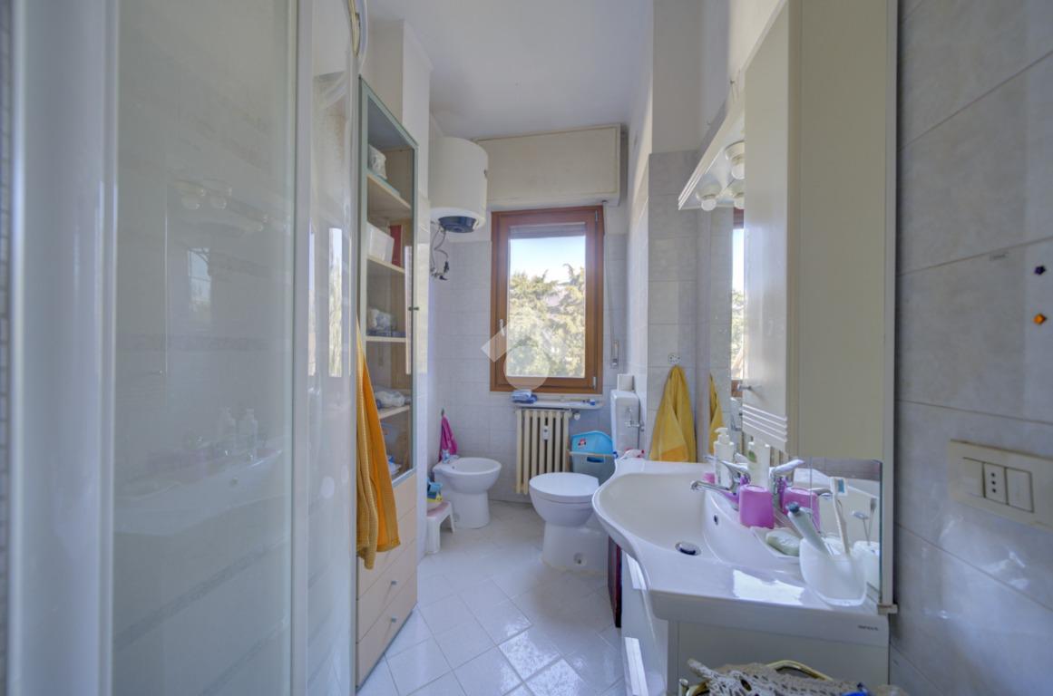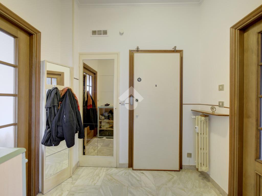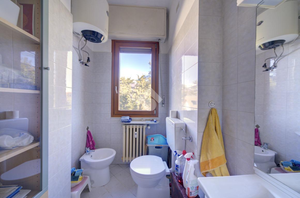 L’ingresso si apre su un disimpegno che distribuisce in modo ordinato i vari ambienti. Il soggiorno dispone di sfogo sul balcone coperto e di collegamento diretto con la camera tramite una luminosa porta scorrevole.