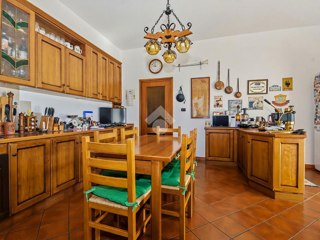 La zona giorno è ampia, luminosa e accogliente: la cucina abitabile, di generose dimensioni, si apre su un terrazzo coperto di circa 15 mq, perfetto per pranzi e momenti di relax all’aperto, mentre il soggiorno doppio, di oltre 30 mq, è arricchito da un camino e dall’uscita sul balcone.